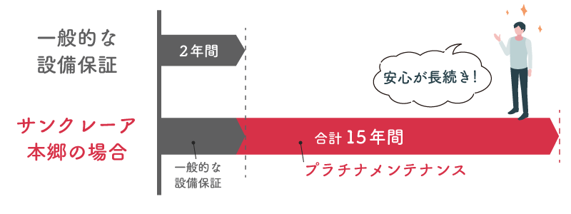 「サンクレーア本郷」では対象設備が15年間修理保証される