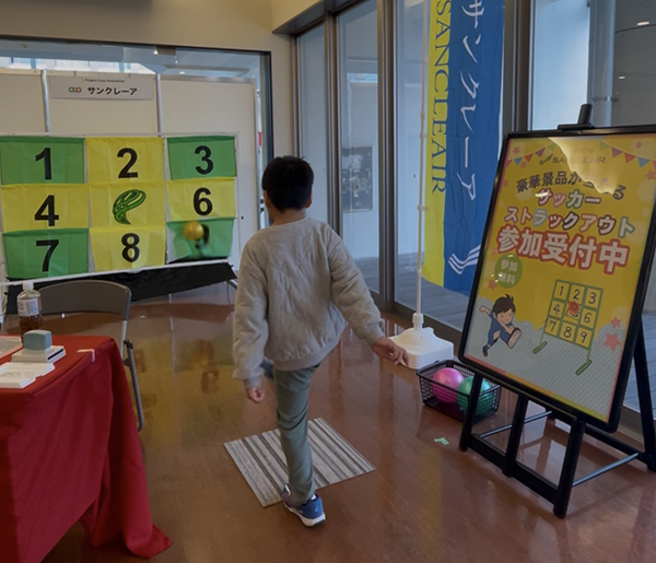 室内の「けやきテラス」1階では、サッカーのストラックアウトを開催しました!